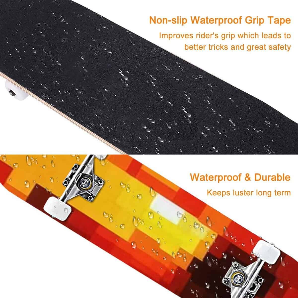 The Skate Board – Canadian Maple Longboard 31” Pro Complete Board is backed by scientific research and evidence, ensuring that you’re getting a product that delivers on its promises. The PU wheels and stainless alloy bearings contribute to a smoother ride, reducing friction and allowing for enhanced maneuverability. The 31″(787mm) x 8″(203mm) dimensions provide ample space for comfortable skating, while the emery non-slip surface ensures a powerful grip, even during intense skating sessions.