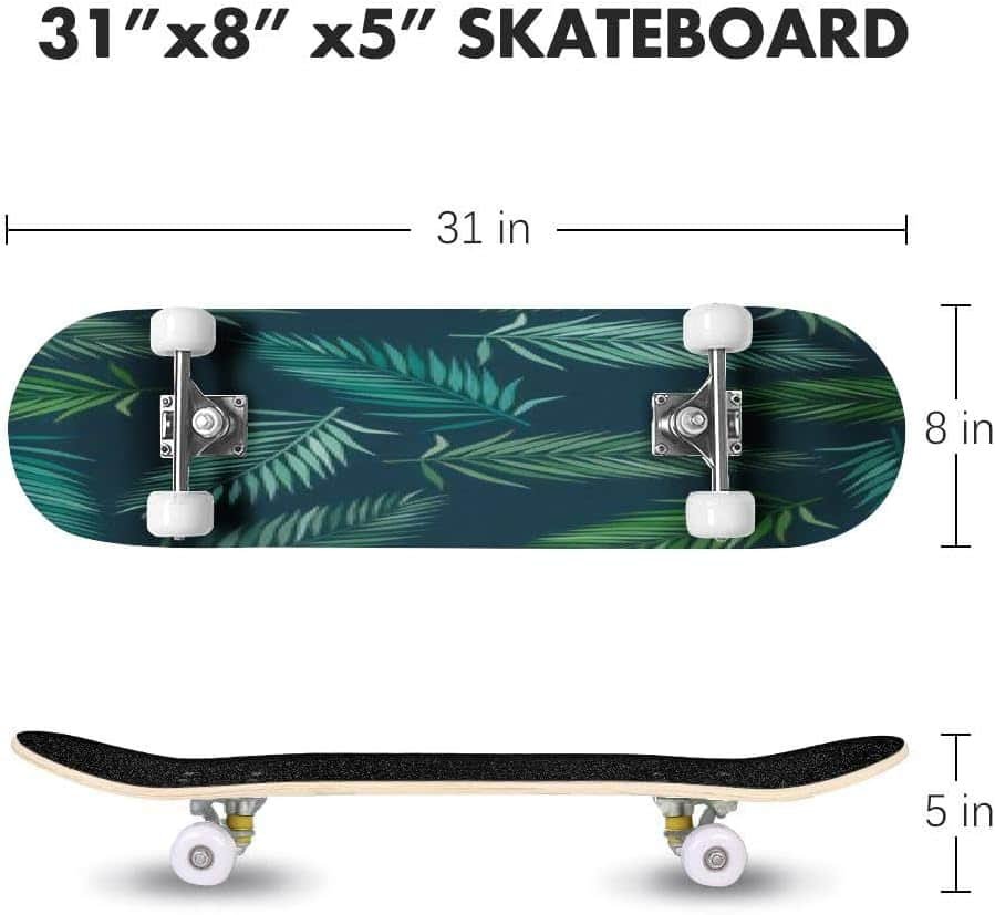Experience the thrill of skateboarding with the Tropical Floral Seamless Pattern Banana Monstera Leaves Yellow Blue Skateboards for Beginners. This complete skateboard is perfect for adults, youths, kids, and teens who are looking to learn new tricks or simply have fun cruising around town. With its 31×8 inch size and double kick concave design, this skateboard offers stability and control for riders of all skill levels. The 7 layers hard Canadian maple deck ensures durability, while the high-quality sandpaper provides a strong anti-slip grip. Stand out among your friends with the eye-catching graphics design on the board. The smooth and wear-resistant PU wheels offer a stable grip, making gliding a breeze. Plus, it makes a great gift for birthdays and other special occasions. Whether you’re a beginner or an experienced skater, this skateboard is perfect for all.
